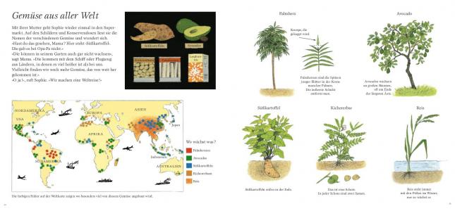 Ein Jahr lang begleitet die Geschichte die Besuche des Stadtkinds Sophie bei ihren Großeltern, die auf dem Land eigenes Gemüse anbauen. Sophie bekommt ihr eigenes kleines Gartenwerkzeug, darf überall helfen, bekommt alles erklärt. Und wir mit ihr - wenn man nicht zufällig selbst Gärtner ist, lernt man eine Menge dazu. Über das Säen und Mulchen, das Vorbereiten und Nachbearbeiten eines Beets, über Schädlinge und Nützlinge im Garten, über Gemüsefamilien, Balkongärten und sogar über die Herkunft einiger exotischer Gemüsesorten. All das Wissen ist übersichtlich gestaltet, begleitet von Gerda Mullers wunderschön sanften, realistischen Zeichnungen und eingebettet in den wohltuenden Urlaub bei Oma und Opa, wo der Morgen mit duftendem Kakao beginnt und alle Zeit für einen haben.